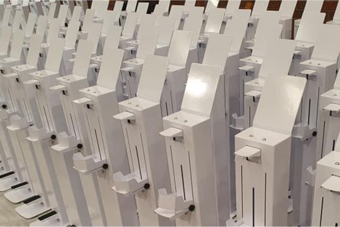In response to the Covid 19 sanitary compliance demands we felt it necessary to design and manufacture a quality foot activated sanitiser dispenser.